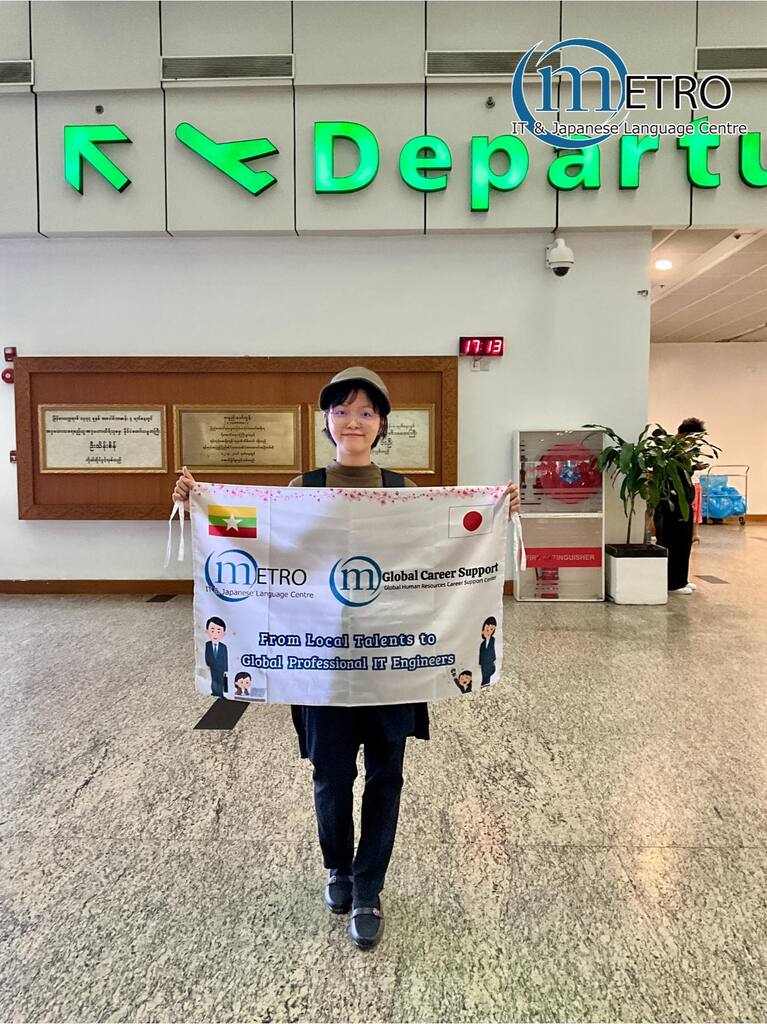 𝗜𝗧 𝗘𝗻𝗴𝗶𝗻𝗲𝗲𝗿 𝗗𝗶𝗽𝗹𝗼𝗺𝗮 𝗖𝗼𝘂𝗿𝘀𝗲 𝟭𝟬𝘁𝗵-𝗕𝗮𝘁𝗰𝗵 မှ ကျောင်းသူ မသင်းသူသူသင်းသည် 𝗠𝗲𝘁𝗿𝗼 𝗜𝗧 & 𝗝𝗮𝗽𝗮𝗻𝗲𝘀𝗲 𝗟𝗮𝗻𝗴𝘂𝗮𝗴𝗲 𝗖𝗲𝗻𝘁𝗿𝗲 ၏ グローバル人材就職支援センター 𝗚𝗹𝗼𝗯𝗮𝗹 𝗖𝗮𝗿𝗲𝗲𝗿 𝗦𝘂𝗽𝗽𝗼𝗿𝘁 𝗖𝗼.,𝗹𝘁𝗱 မှ မိတ်ဆက်ပေးသည့် 𝗝𝗮𝗽𝗮𝗻 နိုင်ငံ 𝙏𝙤𝙠𝙮𝙤မြို့ရှိ 𝗜𝗧 𝗖𝗼𝗺𝗽𝗮𝗻𝘆 ကြီးတစ်ခုတွင် 𝗦𝘆𝘀𝘁𝗲𝗺 𝗘𝗻𝗴𝗶𝗻𝗲𝗲𝗿 𝗣𝗼𝘀𝗶𝘁𝗶𝗼𝗻 ဖြင့် လုပ်ငန်းခွင်ဝင်ရောက်ရန်အတွက် ဂျပန်နိုင်ငံသို့ ထွက်ခွါသွားပြီဖြစ်ပါသည်။