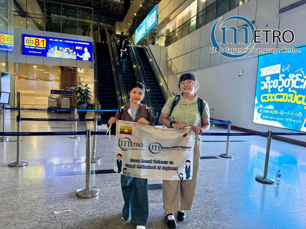 𝗜𝗧 𝗘𝗻𝗴𝗶𝗻𝗲𝗲𝗿 𝗗𝗶𝗽𝗹𝗼𝗺𝗮 𝗖𝗼𝘂𝗿𝘀𝗲 𝟭𝟭𝘁𝗵-𝗕𝗮𝘁𝗰𝗵မှ ကျောင်းသူ မမနောချို နှင့် မဖူးဖူးသစ်ဇော်သည် 𝗠𝗲𝘁𝗿𝗼 𝗜𝗧 & 𝗝𝗮𝗽𝗮𝗻𝗲𝘀𝗲 𝗟𝗮𝗻𝗴𝘂𝗮𝗴𝗲 𝗖𝗲𝗻𝘁𝗿𝗲 ၏ グローバル人材就職支援センター 𝗚𝗹𝗼𝗯𝗮𝗹 𝗖𝗮𝗿𝗲𝗲𝗿 𝗦𝘂𝗽𝗽𝗼𝗿𝘁 𝗖𝗼.,𝗹𝘁𝗱 မှ မိတ်ဆက်ပေးသည့် 𝗝𝗮𝗽𝗮𝗻 နိုင်ငံရှိ 𝗜𝗧 𝗖𝗼𝗺𝗽𝗮𝗻𝘆 ကြီးတစ်ခုတွင် 𝗦𝗼𝗳𝘁𝘄𝗮𝗿𝗲 𝗘𝗻𝗴𝗶𝗻𝗲𝗲𝗿𝗶𝗻𝗴 𝗣𝗼𝘀𝗶𝘁𝗶𝗼𝗻 ဖြင့် လုပ်ငန်းခွင်ဝင်ရောက်ရန်အတွက် ဂျပန်နိုင်ငံသို့ ထွက်ခွါသွားပြီဖြစ်ပါသည်။